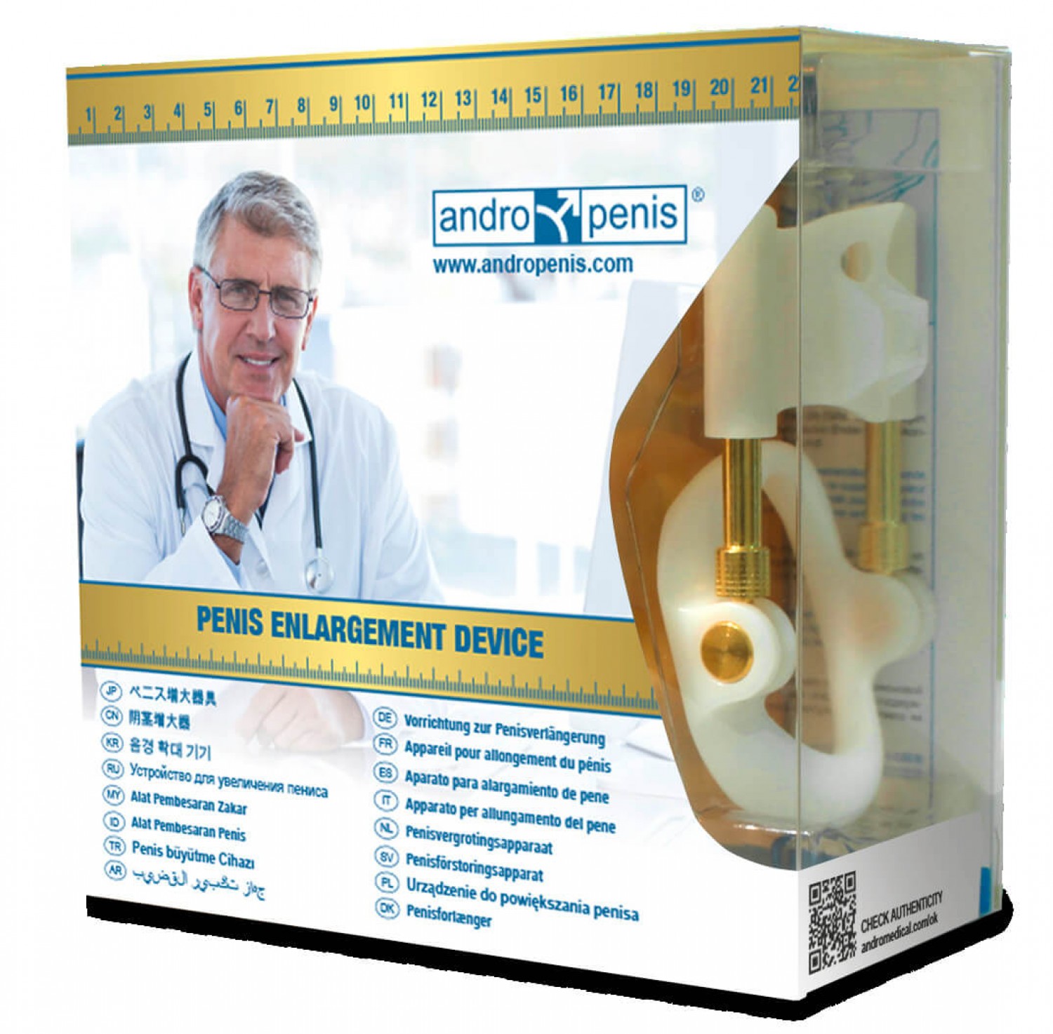 A pénisz tartós megnövelése már néhány hét alatt lehetséges, hogy az élet teljesebb legyen - operáció és rizikó nélkül! Az AndroPenis Gold egy speciális expanderrel váltja ki a hatást: a sikeres és igazolt elmélet egy speciális expanderen alapszik, mely rugalmasságával, nyújthatóságával változtatja meg a hímvessző szöveteinek méretét, ezáltal fokozva az üregek nagyságát. Elősegíti a pénisz jobb vérkeringését, növeli annak rugalmasságát! Kényelmesen és abszolút diszkréten hordható, legyen szó álló, ülő vagy mozgást igénylő munkáról. Az AndroPenis Gold könnyen felhelyezhető, javasolt naponta 4-9 órát hordani, ha egy gyors eredményt szeretne elérni viselője. Kb. kétóránként viszont muszáj egy rövid szünetet tartani! A kezelési idő 4-6 hónap, mialatt átlagosan havonta fél centiméternyi növekedés érhető el. A kezelés befejeztével a nyert plusz centiméterek örökre megmaradnak! A pénisz görbeségét, esetleges deformitását is eredményesen kezeli az AndroPenis Gold. A csomag komplett, minden szükséges tartozékot tartalmaz az expander mellett, s hogy használata egyértelmű legyen, DVD-t is mellékelünk a csomagba, amely pontosan bemutatja a helyes használatot.